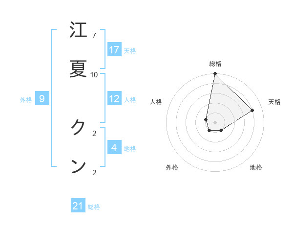 本サイトの鑑定結果の正当性は保証しません。鑑定結果は参考程度にお読みください。実際の名づけにご利用される場合は、姓名判断についてご自身でよくお調べください。
