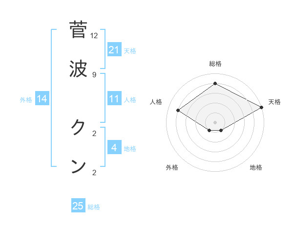 菅波 クンさんの天格は21画の5点!
