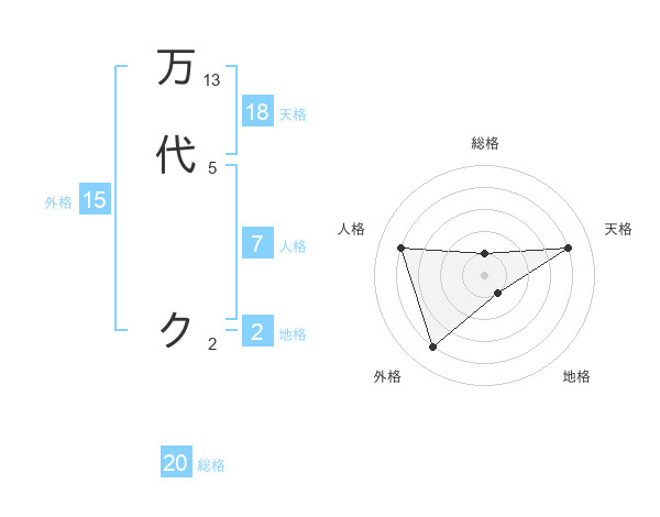 万代 クさんの総格は20画の1点!