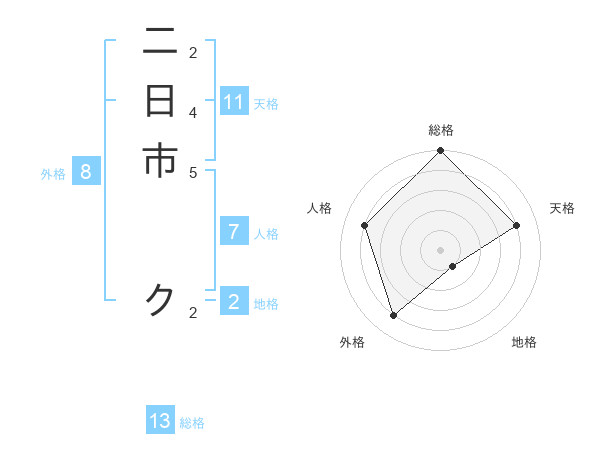二日市 クさんの総格は13画の5点!