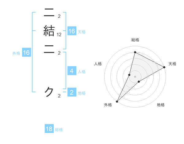 二結二 クさんの総格は18画の4点!