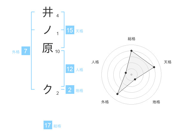 井ノ原 クさんを姓名の画数から五運を鑑定