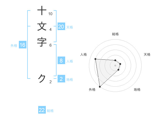 十文字 クさんの総格は22画の1点!