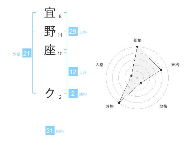 宜野座 クさんの総格は31画の5点!