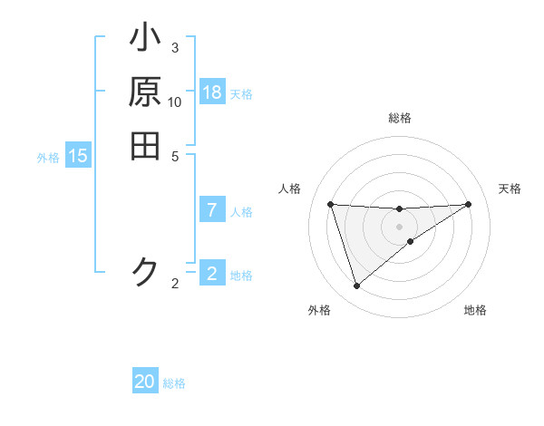 小原田 クさんの総格は20画の1点!