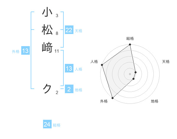 小松﨑 クさんを姓名の画数から五運を鑑定