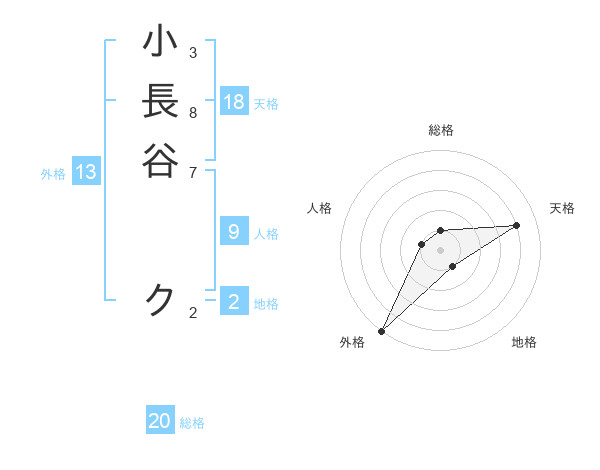 小長谷 クさんの外格は13画の5点!