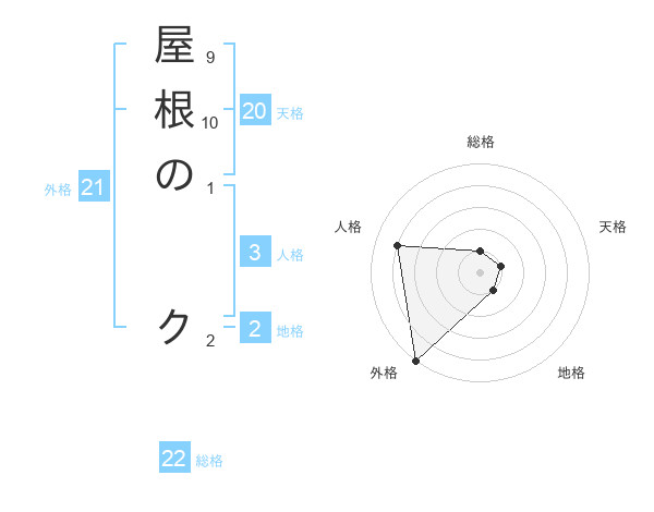 屋根の クさんの総格は22画の1点!