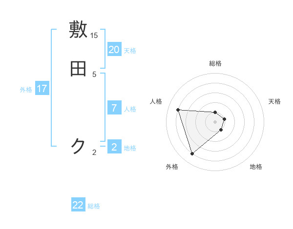 敷田 クさんの総格は22画の1点!