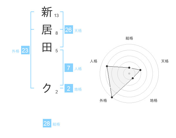 新居田 クさんの外格は23画の5点!