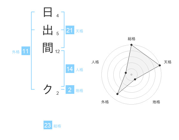 日出間 クさんの総格は23画の5点!