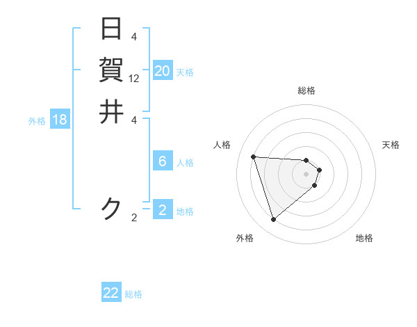 日賀井 クさんの総格は22画の1点!
