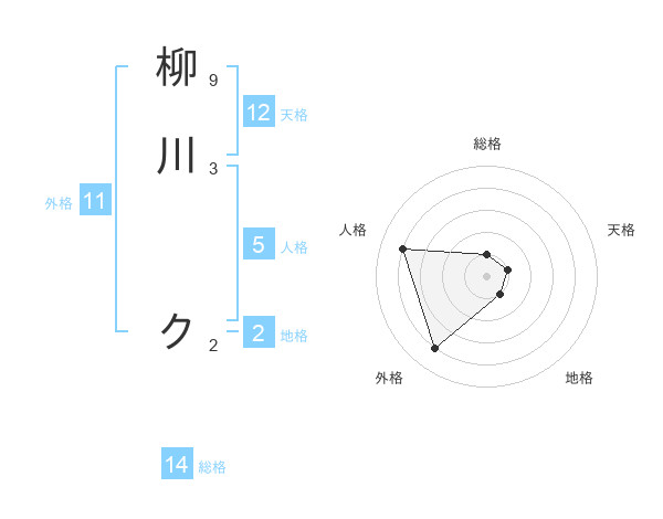 柳川 クさんの総格は14画の1点!