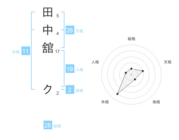 田中舘 クさんの総格は28画の1点!