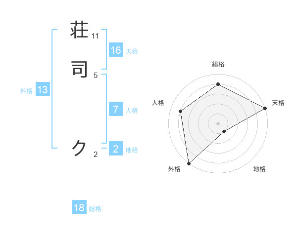 荘司 クさんの天格は16画の5点!