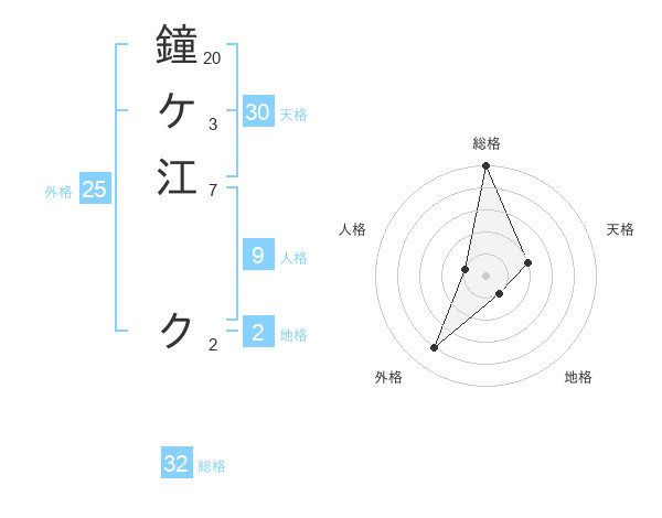 鐘ケ江 クさんの総格は32画の5点!