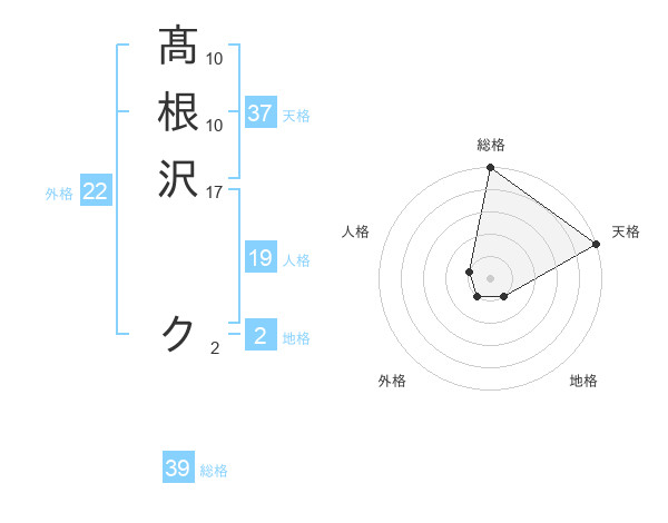 髙根沢 クさんを姓名の画数から五運を鑑定