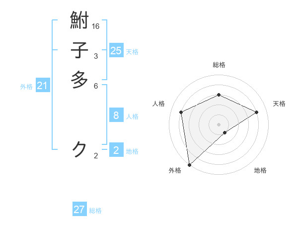 鮒子多 クさんの総格は27画の3点!