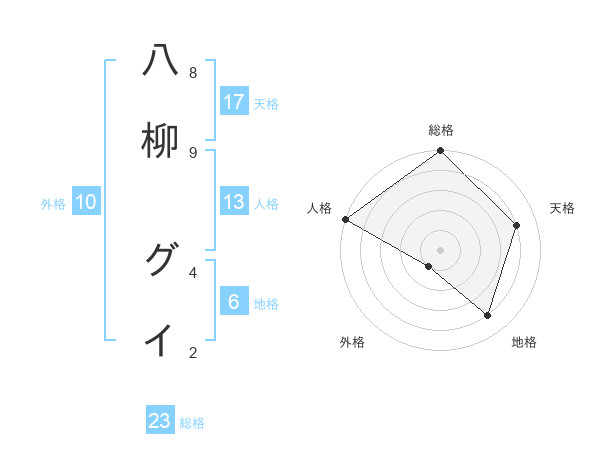 八柳 グイさんの総格は23画の5点!