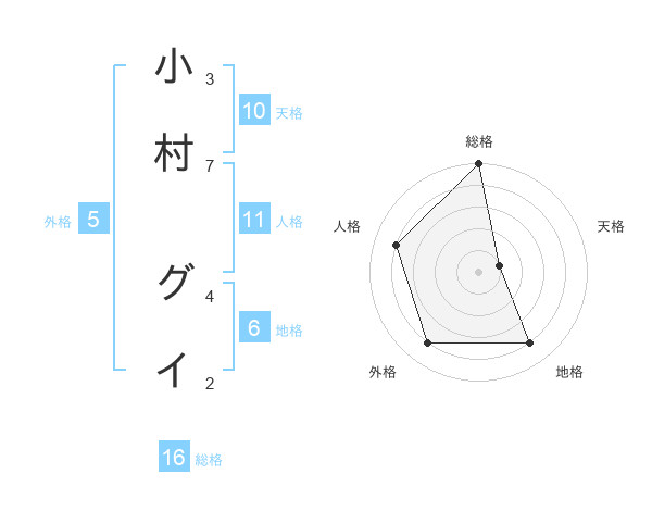 小村 グイさんの総格は16画の5点!