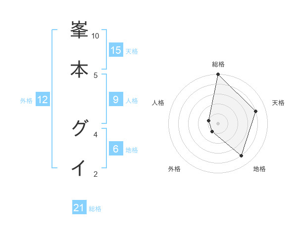 峯本 グイさんの総格は21画の5点!