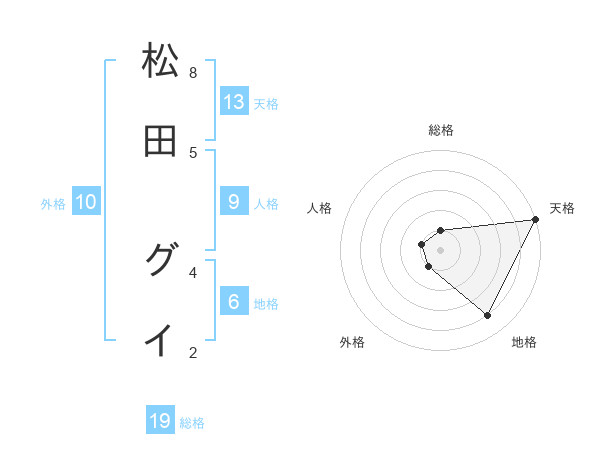 松田 グイさんの天格は13画の5点!