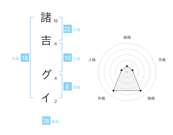 諸吉 グイさんの天格は22画の1点!