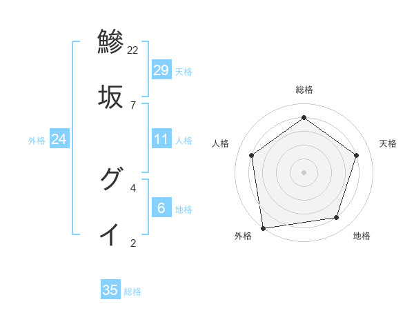 鰺坂 グイさんの総格は35画の4点!
