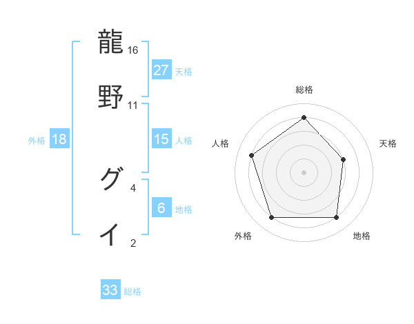 龍野 グイさんの総格は33画の4点!