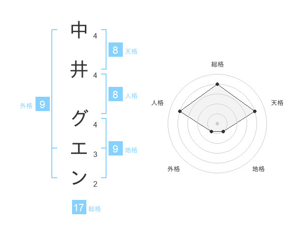 中井 グエンさんの総格は17画の4点!