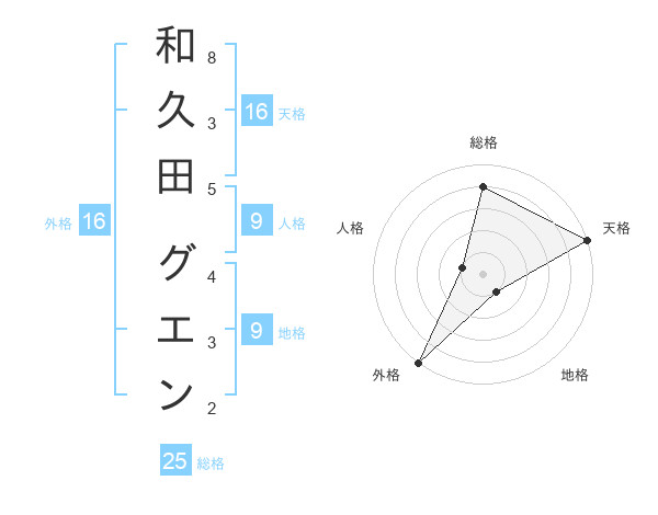 和久田 グエンさんの外格は16画の5点!