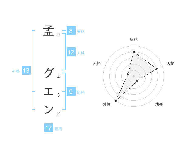 孟 グエンさんの外格は13画の5点!