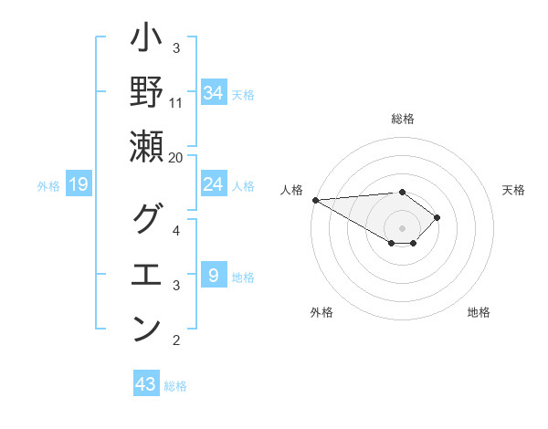 小野瀬 グエンさんを姓名の画数から五運を鑑定