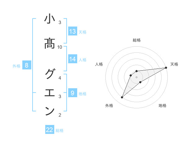 小髙 グエンさんの天格は13画の5点!
