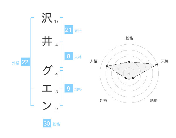 沢井 グエンさんの天格は21画の5点!