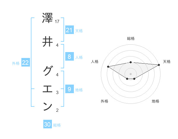 澤井 グエンさんを姓名の画数から五運を鑑定