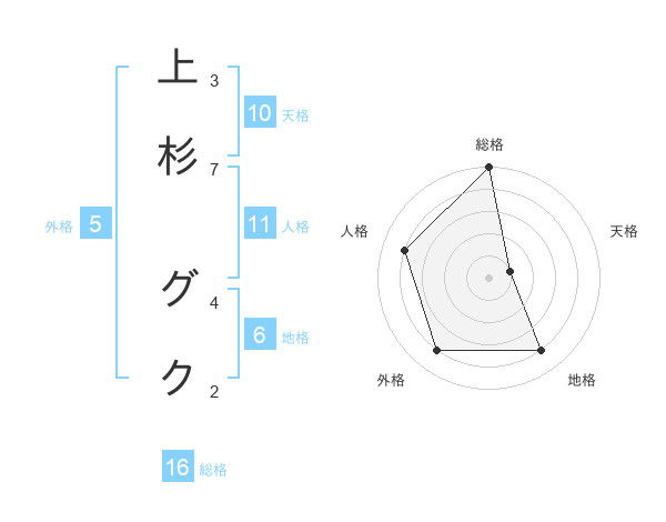 上杉 グクさんの総格は16画の5点!