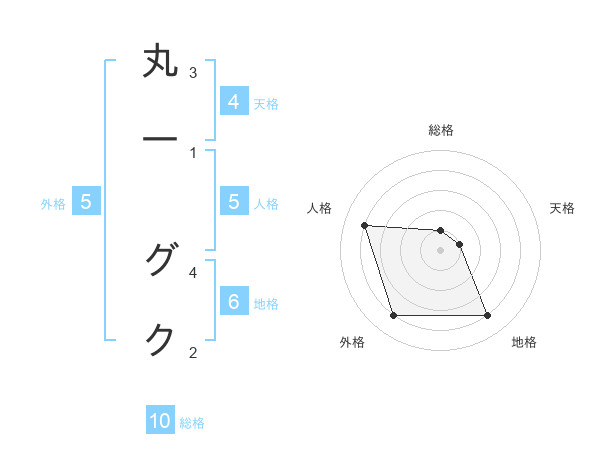 丸一 グクさんの外格は5画の4点!