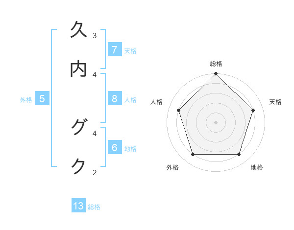 久内 グクさんの総格は13画の5点!