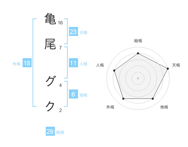 亀尾 グクさんを姓名の画数から五運を鑑定