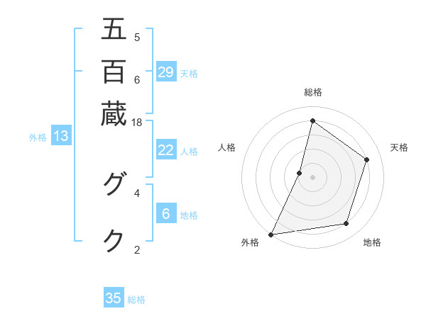 五百蔵 グクさんの外格は13画の5点!