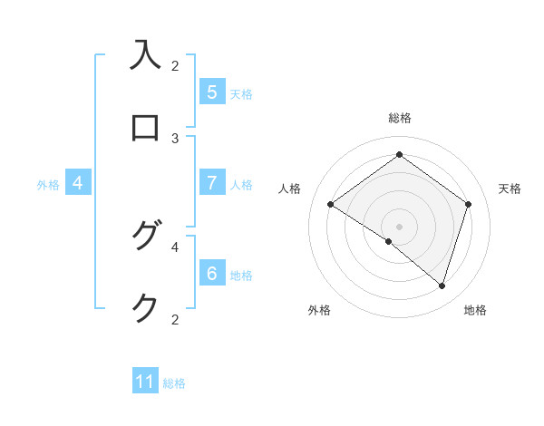 入口 グクさんの総格は11画の4点!