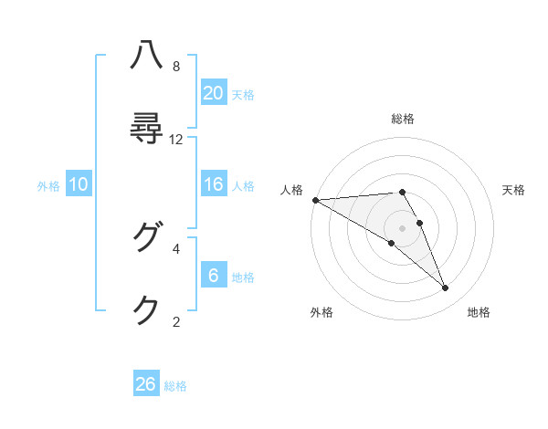 八尋 グクさんの天格は20画の1点!