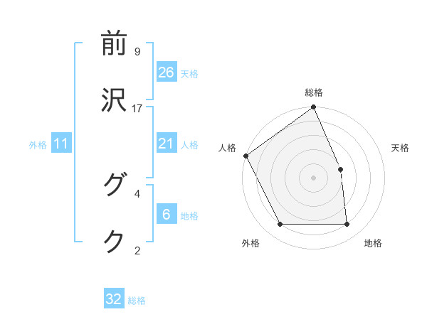前沢 グクさんの天格は26画の2点!