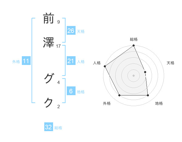 前澤 グクさんの外格は11画の4点!