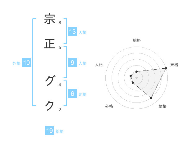 宗正 グクさんの外格は10画の1点!