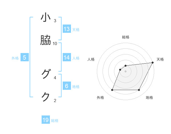 小脇 グクさんの天格は13画の5点!