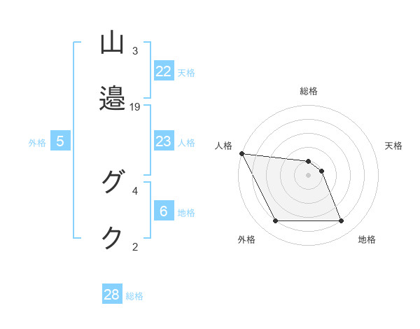 山邉 グクさんの外格は5画の4点!