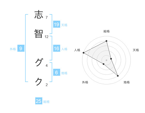 志智 グクさんの天格は19画の1点!
