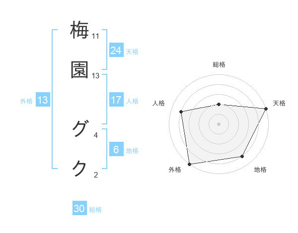 梅園 グクさんの天格は24画の5点!